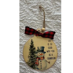 4" Wooden Ornament with a wire bow and a wooden bead to show off this stunning ornament strung with a twine jute hanger