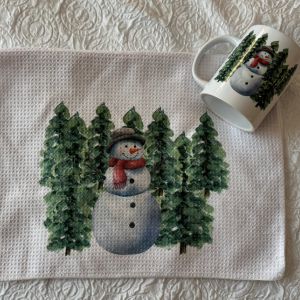 Green Trees with Cardinal Tea Towel and mugBeautiful Green Trees with Red Cardinals will make any room light up